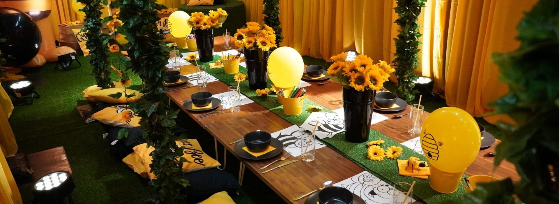 With lots of Bumble Bee party décor and styling products available for hire including delivery and set up service, it’s easy to create a Bee Happy event space.