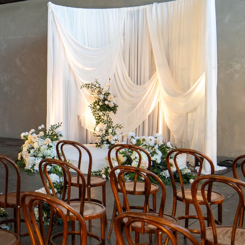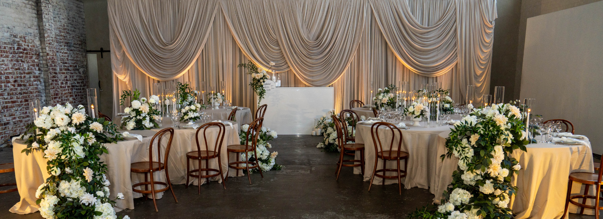 Our Classic Romance decor includes ceremony and reception chairs and tables, aisle decorations, dramatic draping, stages, table decor, signage, and so much more. Whether you're styling an indoor event or outdoor celebraiton, our team provides everything you need to build a effortlessly beautiful Classic Romance style in any event space across Melbourne.