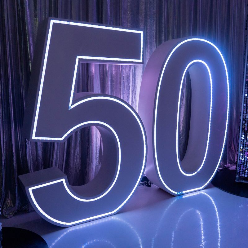 Celebrate in style with our giant light up number hire, perfect for marking milestone events like a 21st birthday, 30th birthday, 40th birthday, or 50th birthday. Our light up number hire service includes both large and small light up numbers, giving you flexible options to suit your space and event size. These bright, eye-catching numbers add instant impact to your party setup and are a great backdrop for photos.