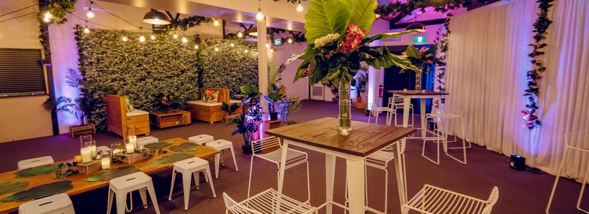 Our topical themed decorations are available for hire which makes it easy to create a relaxed and inviting tropical space without the stress.